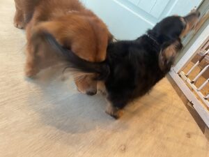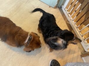 柵をがりがりしてママ待ってたね![]()